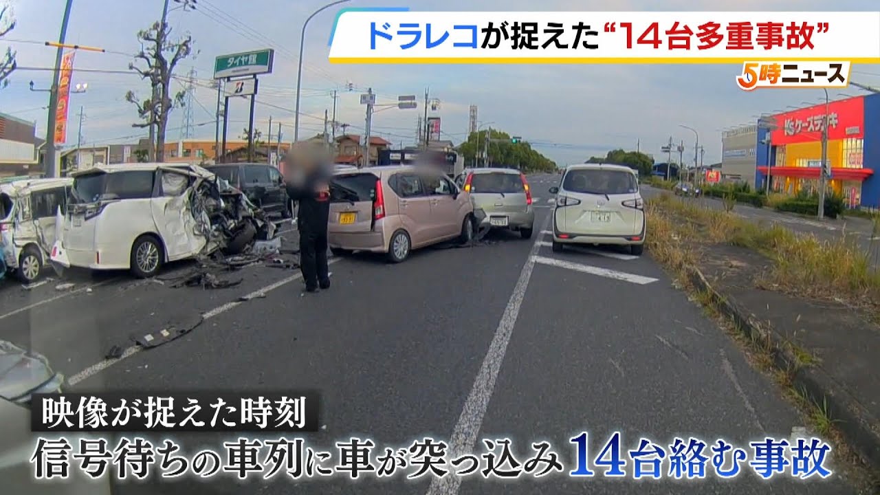 映像が捉えていた時刻に、この現場では信号待ちの車列に車が突っ込み、14台が関係する事故が起きていました。