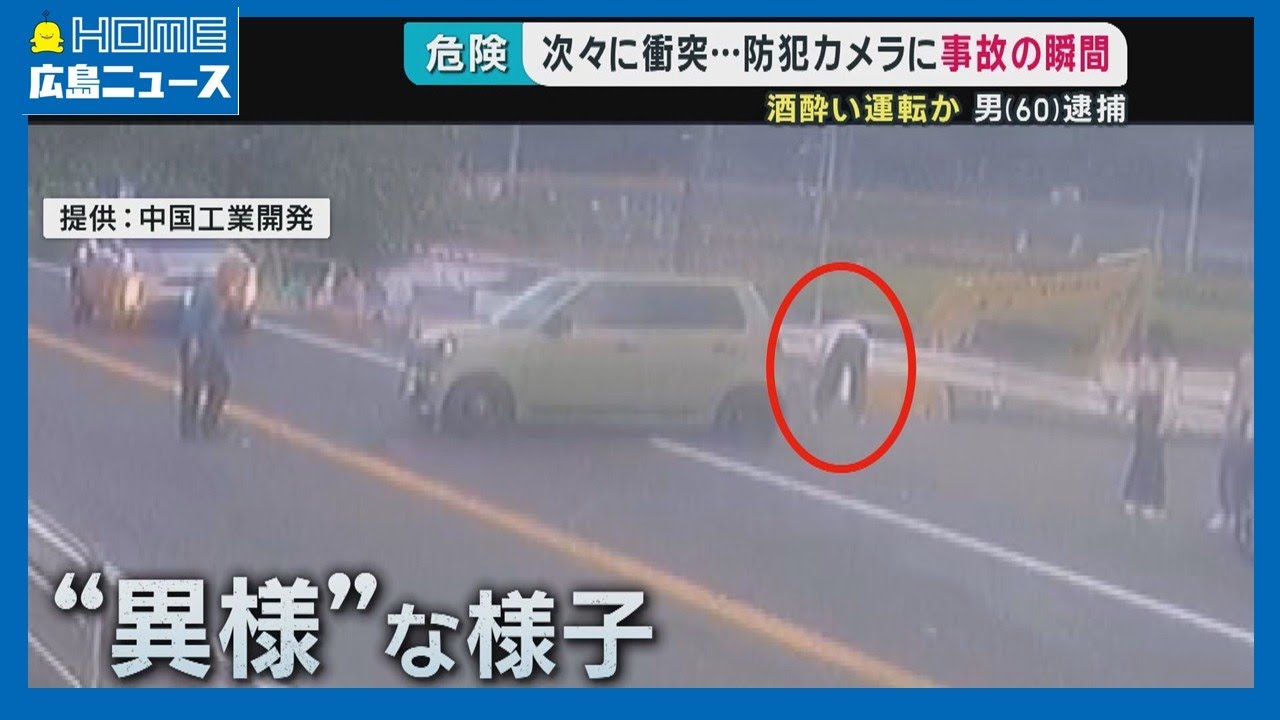 広島県竹原市の国道で60歳の男が運転する車が逆走しながら次々に対向車と衝突しました。警察は酒酔い運転の疑いで男を現行犯逮捕し、容疑を危険運転致傷に切り替えて捜査しています。