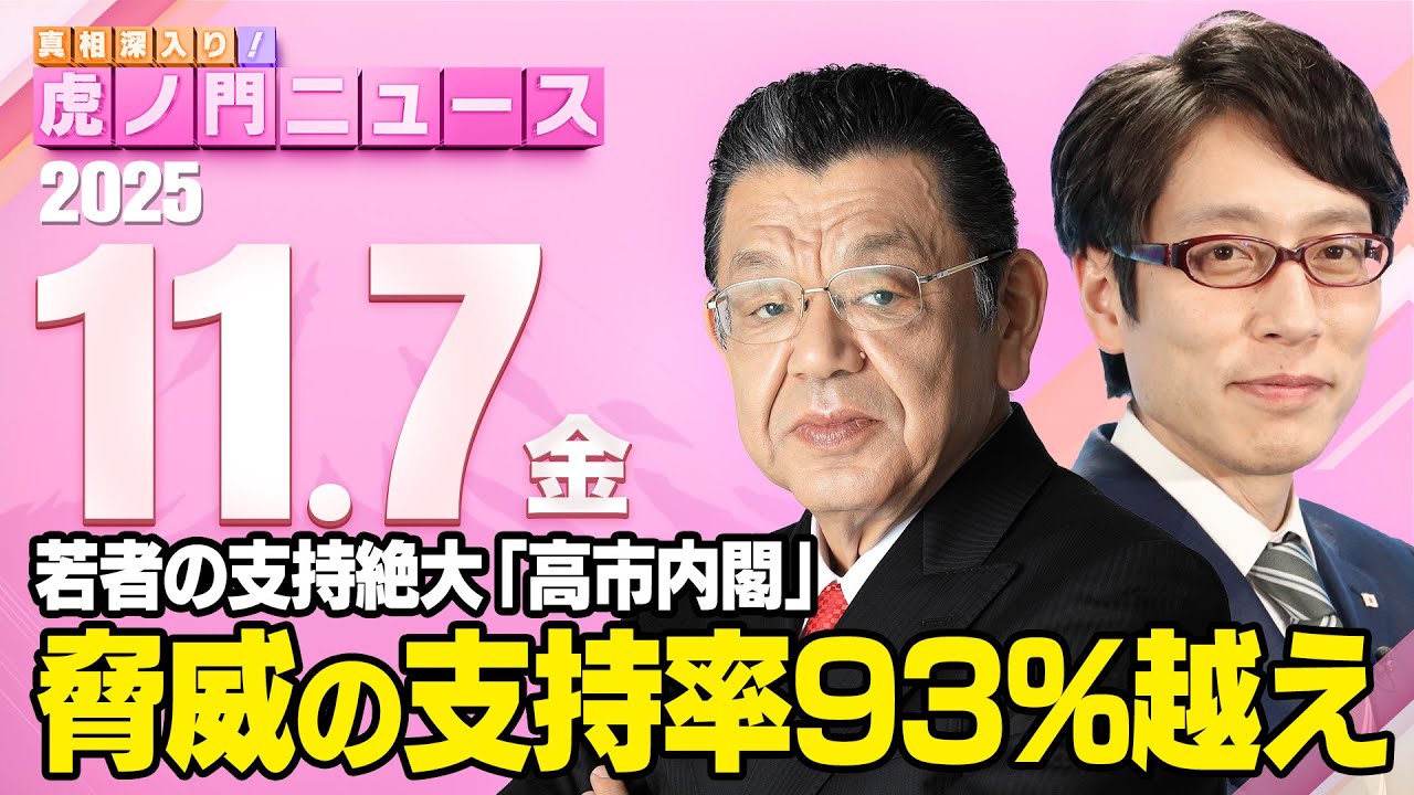 【虎ノ門ニュース】脅威の支持率93%越え!高市内閣と若者人気! 竹田恒泰×須田慎一郎 2025/11/7(金)
