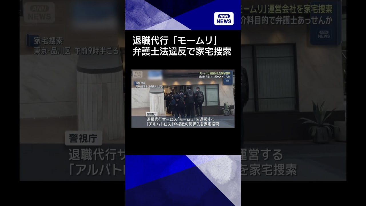 警視庁は22日午前9時すぎ、退職代行サービス「モームリ」を運営する東京・品川区の「アルバトロス」や、提携する都内の弁護士事務所など、複数の関係先に家宅捜索に入りました。