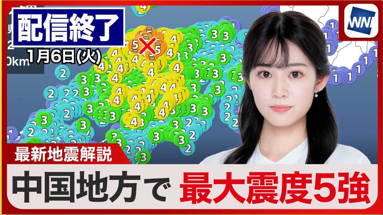 10時18分頃、鳥取県と島根県で最大震度5強を観測する地震がありました。この地震による津波の心配はありません。
