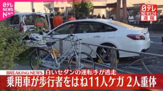 【速報】乗用車が歩行者をはね11人ケガ、うち2人重体 現場に残されたセダンの運転手が衝突後に逃走…ひき逃げ事件として捜査