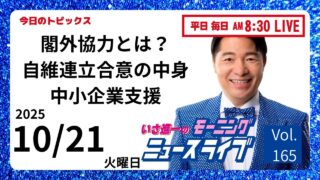 ニュース 【モーニングニュースライブ】10/21(火)知ってほしい今日のニュースを厳選!いさ進一が生解説する新聞情報 ・ ニュースチェック【 10分解説 / 政治ニュース / 生配信 】